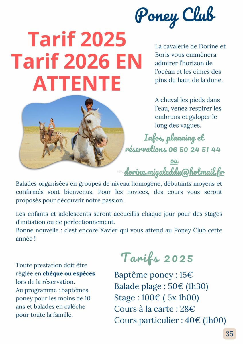 Ter indicatie, herinneren wij u aan de tarieven van het seizoen 2025.