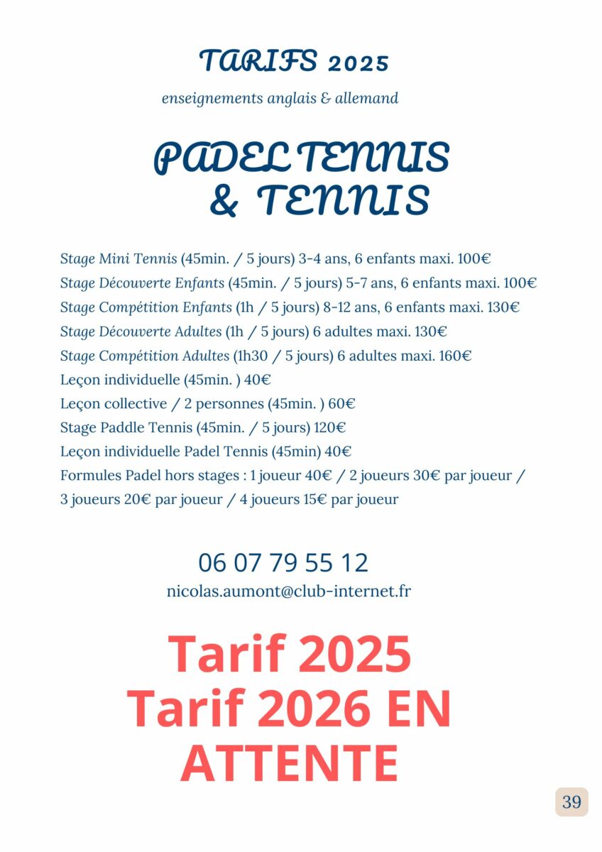 Voor meer details over de cursussen (tegen betaling), raadpleeg onze speciale Padelpagina.